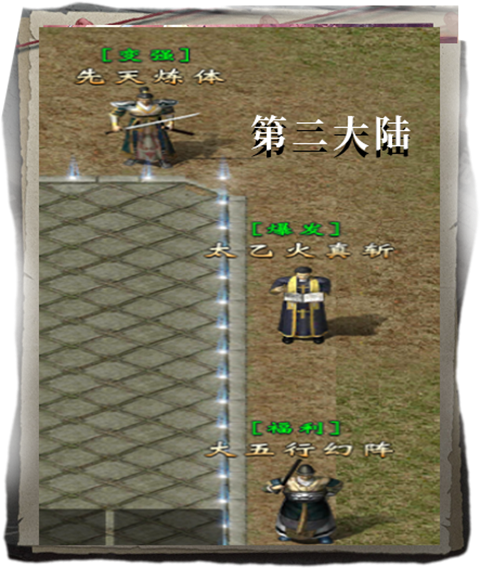 兽处领取18888切割等奖励(切割是打怪重要属性之一),之后跟随主线抵达三大陆,如凑齐了五行圣物可在NPC大五行幻世阵提交领取切割等奖励