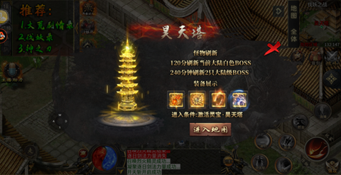图海之秘密,浅海海域下级地图山河湿地与裂天之地;如果在线充值全部买了可获得昊天塔灵宝,可以前往昊天塔内打