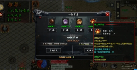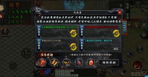 伐妖录绝大部分都可跟随着剧情同步进行,需要注意的是有些任务/功能/合成装备不要分解回收了,完成或激活后再设置此类回收。完成任务后可以获取丰厚的奖励(点击图片查看详情)!小小的TIP:可以去功勋商店把神力斩杀者兑换了!永恒神力+999攻击几率打出(神力值)‰*攻击力的额外伤害配合永恒神装威力巨大双击使用,即