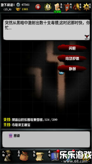 2、挖出地洞后进去即可,进入地洞后靠左下角往上走,碰到毒镖选择闪避,不然会受轻伤。