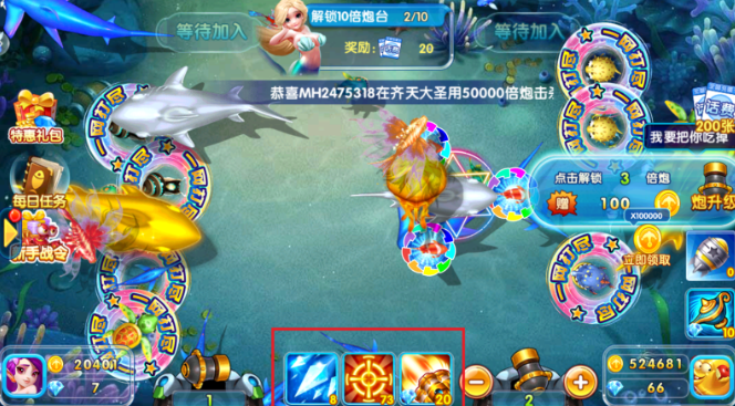 使用1000倍以上炮台成功击杀“奖金鱼”,有一定几率获得材料。