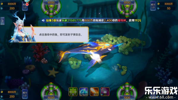 1、进入游戏,点击渔场中的鱼,即可发射子弹进行射击