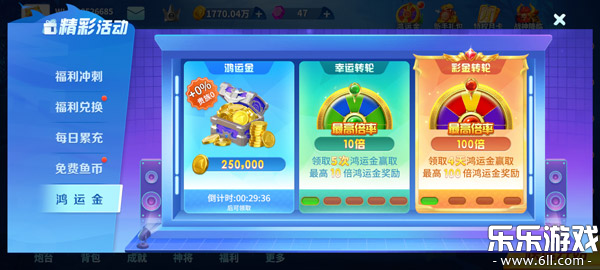 如果运气很背,打着打着就进入了吃分期,而且因为心态不好,一时间没能刹住车,结果把金币全部打完了怎么办?不要慌,微乐捕鱼千炮版游戏里有一次领取救济金的机会,根据贵族等级不同,可以领到相应的救济金哦。