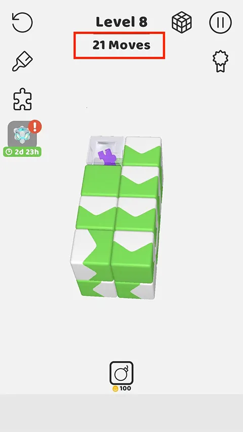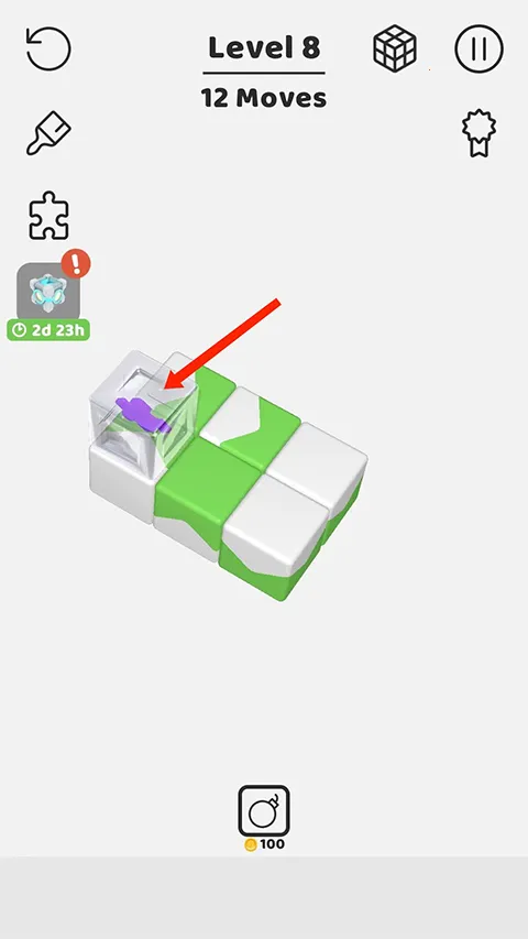 6、还剩下8次点击次数,和两个小方块,我们将它们消除即可通关,