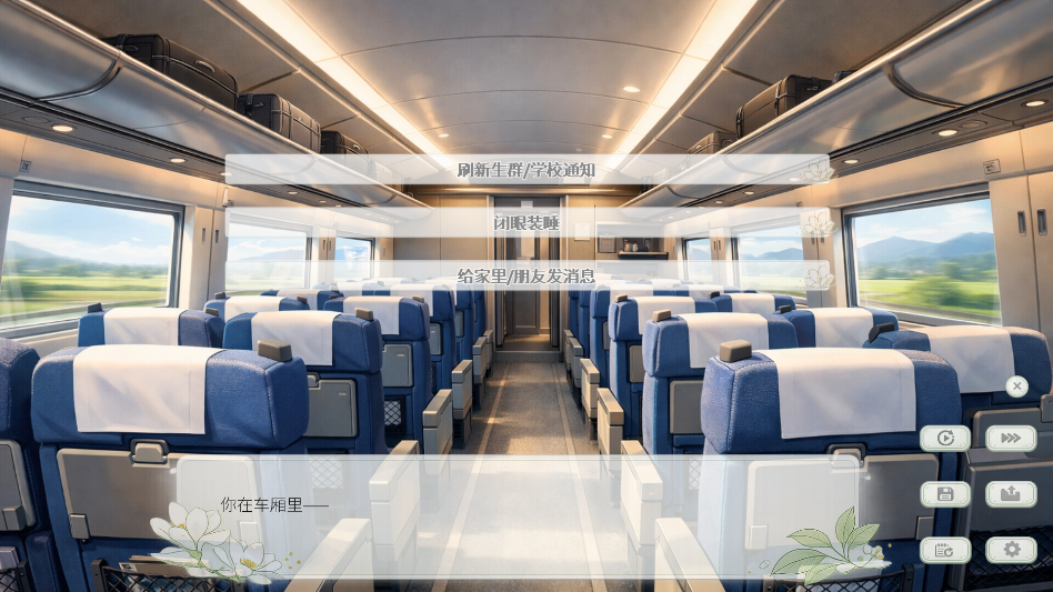 2、游戏的整体玩法就是文字剧情,玩家将会在一辆火车上醒来,将会去到陌生城市,开启自己大学生活。