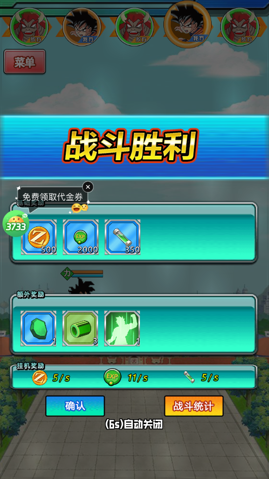 5、战斗胜利后还能获得通关奖励;