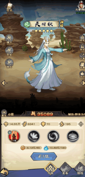 点击任一英雄,即可跳转入对应页面,消耗一定大唐文钱和英雄灵气,就可让英雄进行升级。在80级、100级、120级,还会分别依次解锁魂力、灵宝、神兵等玩法。