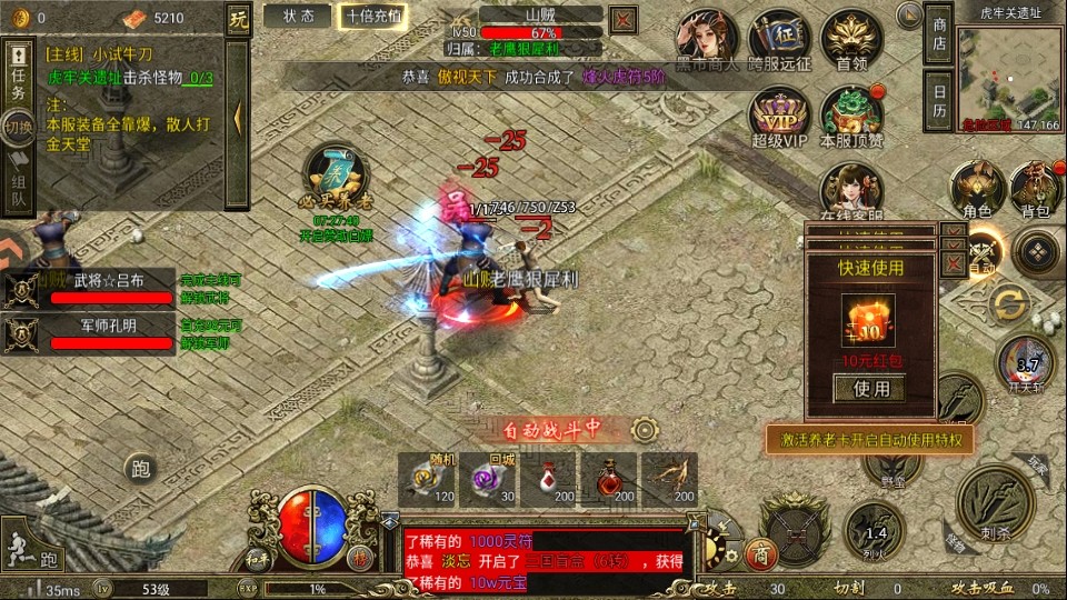 战役副本:如太平道观副本,手动挑战可拾取金币袋子,每日3次挑战月收益可达2000万金币(需一定战力基础)。