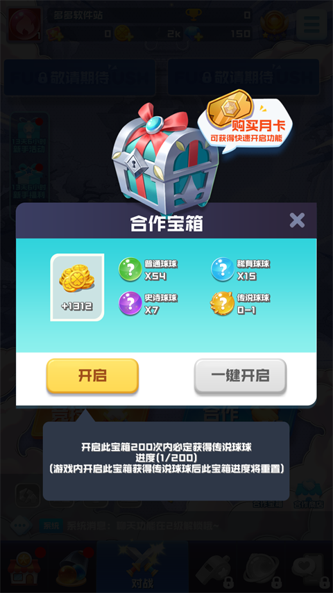 5、最后在右小角还有合作宝箱可以免费开启哦~
