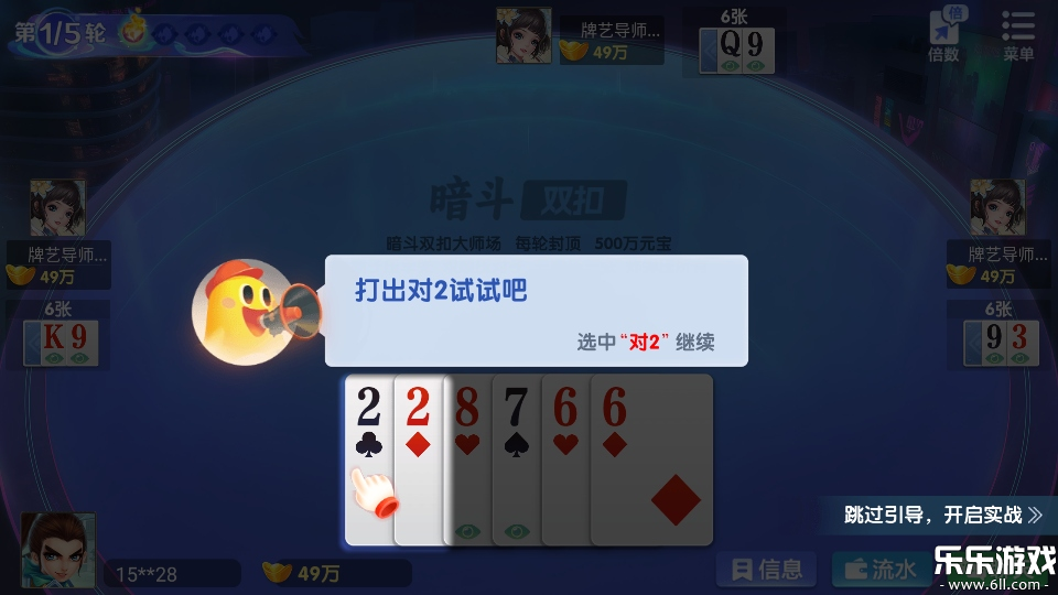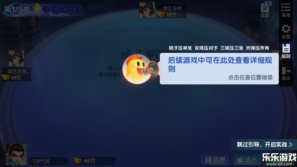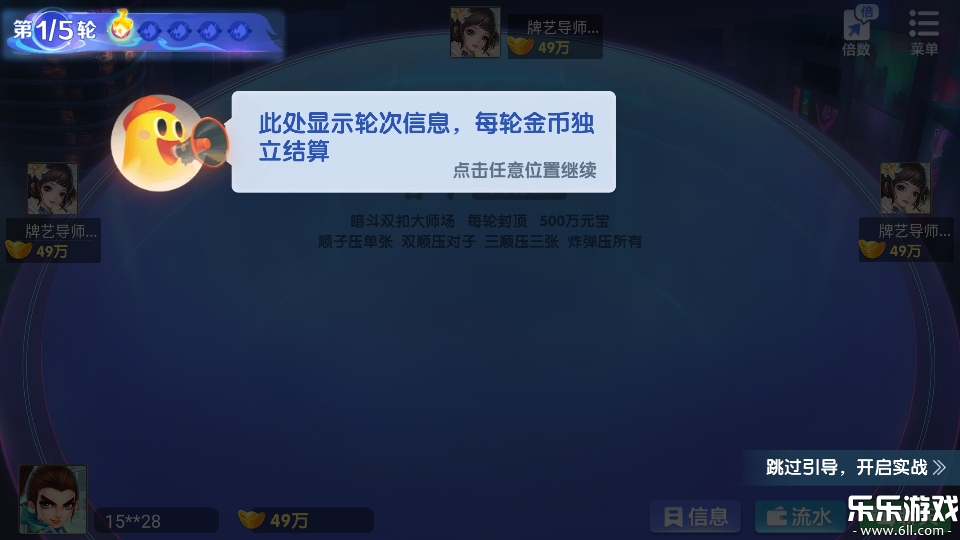 1、进入牌局后左上角显示轮次。