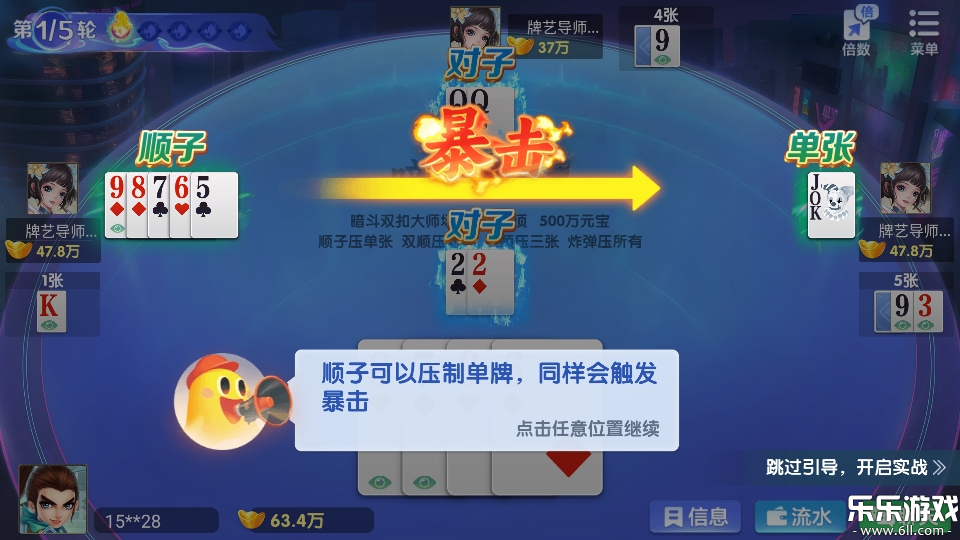 4.顺子可以压制单排,打出暴击获得高收益。
