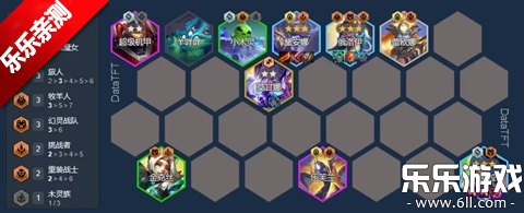 阵容由3幻灵战队+3法官+小木灵,7人口就可以组成的收菜娱乐阵容;幻灵战队最为S17中唯一的收菜娱乐阵容,只需要在二阶段拥有3幻灵就可以挂机连败了(没错就是纯连败没有任意机制可言)需要注意就是调整站位和避免遇到空城;神明的选择最好是奶妈可以回血,海克斯也是选择回血类或经济类的;尽量往300层以上收,