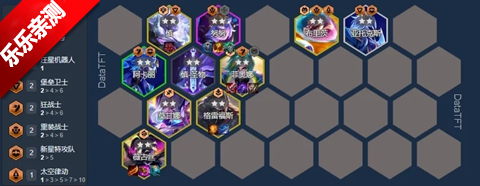 阵容由3张霸天机甲+巴德+2新星特工队,九人口组成,是因为霸天机甲可以变为“究极形态”但会占用两个人口类似之前的“巨像”;神明(阿狸,艾克,亚索)海克斯选择2经济1战力搭配;前期固定公式未来战士+海魔人,中期找出三张霸天机甲卡,后续可以在盗出三星龙王/加里奥,或者上9去补充强力单卡(莫甘娜,剑姬,慎等);这套阵容可以在7人口来厄加特多的时候直接追三星厄加特换其主C;