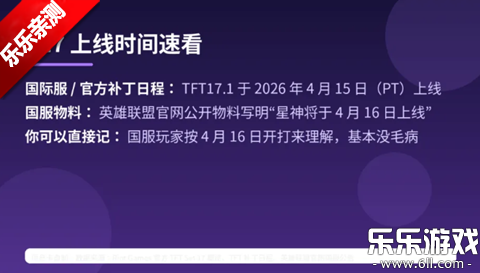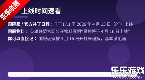 先说结论:S17不是普通换赛季。对国服玩家来说,你可以直接记一句:4月16日开服,先别急着抄作业,这版本先看懂“怎么选路”。按Riot官方补丁日程,TFT17.1会在2026年4月15日(PT)上线;国服官网公开物料写的是“星神将于4月16日上线”。这俩时间并不冲突,基本就是时区差一脚的事。你真要发首发,直接按“国服4月16日开打”去讲,没毛病。