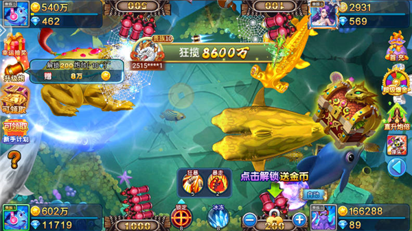 2、每次射击都会消耗金币,而成功捕捉鱼群则能获得可观的奖励,回报丰厚。