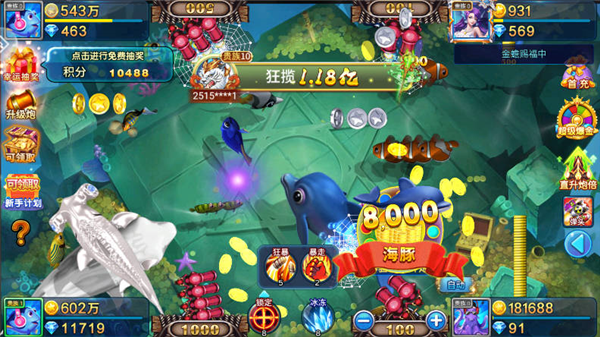 4、捕获积分鱼后可以获得随机范围的积分,积分可以进行抽奖,鱼的倍数越高,获得基础积分越多。