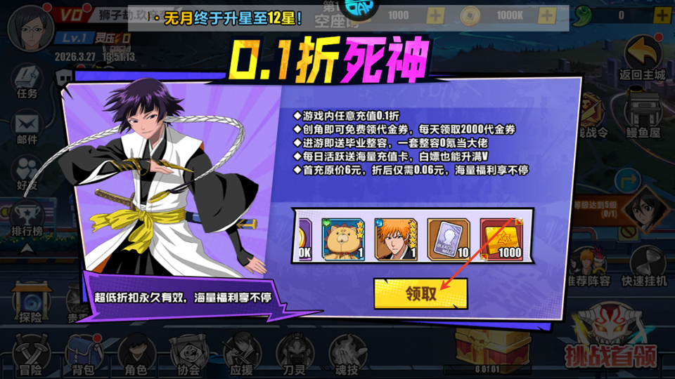 勇者传承0.1折送毕业阵容(com.m648sy.jjjd01zhf2.my)是一款以超人气动漫《死神》为题材改编的卡牌回合制手游。你将扮演一名觉醒死神之力的代理死神,在黑崎一护、朽木露琪亚等经典角色的陪伴下,挑战虚、破面、灭却师等各路强敌,重走那段燃爆青春的护廷之路。游戏内置永久0.1折充值福利——所有消费仅需原价的十分之一,让你用最少的代价,集结最强的死神阵容!
