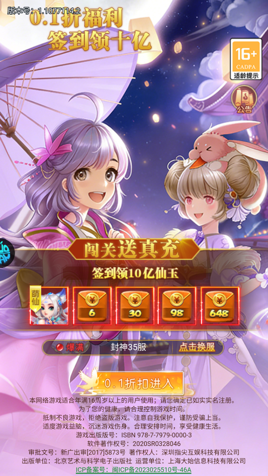 1、打开游戏,我们选择相应的热门区服,之后点击0.1折扣进入。