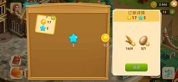 9、另外在订单板中,玩家消耗相应物资完成订单后同样可以获得星星和金币奖励哦。