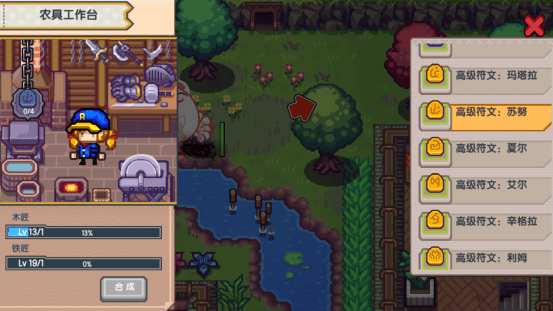 5、符文类的可以在约恩村的左上角农具合成台进行合成