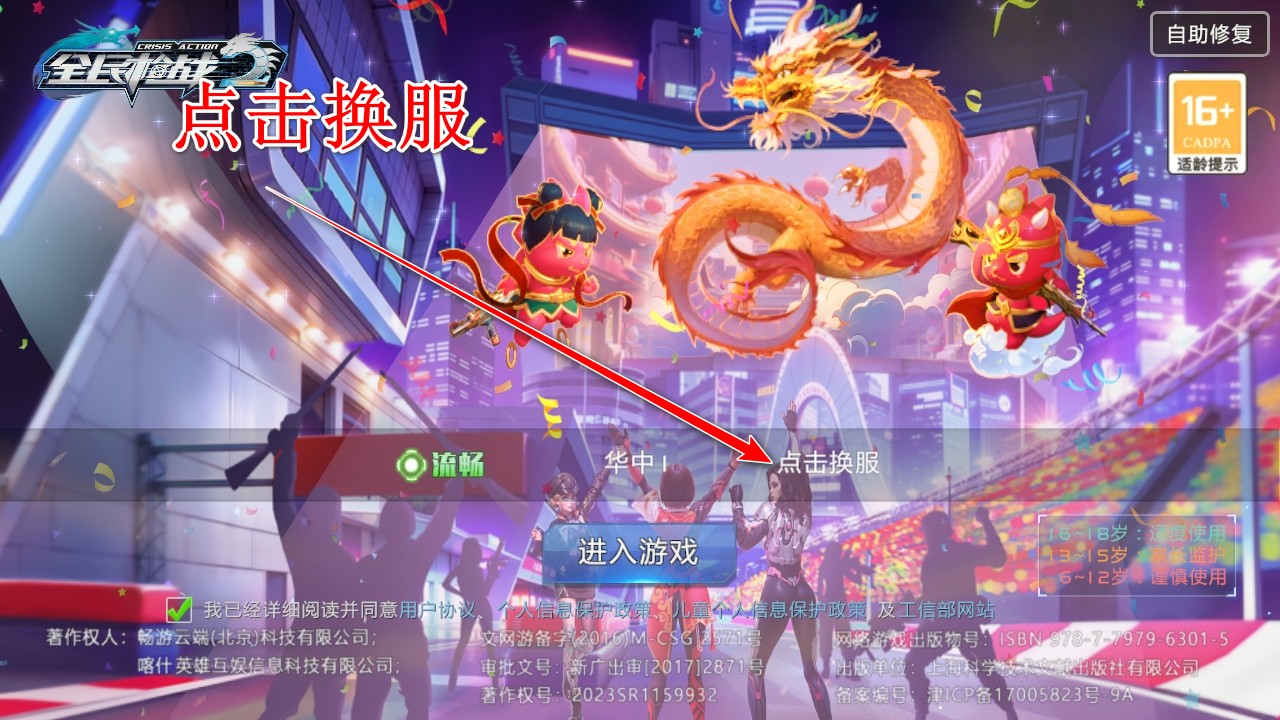 1.在你登录游戏之后点击换服
