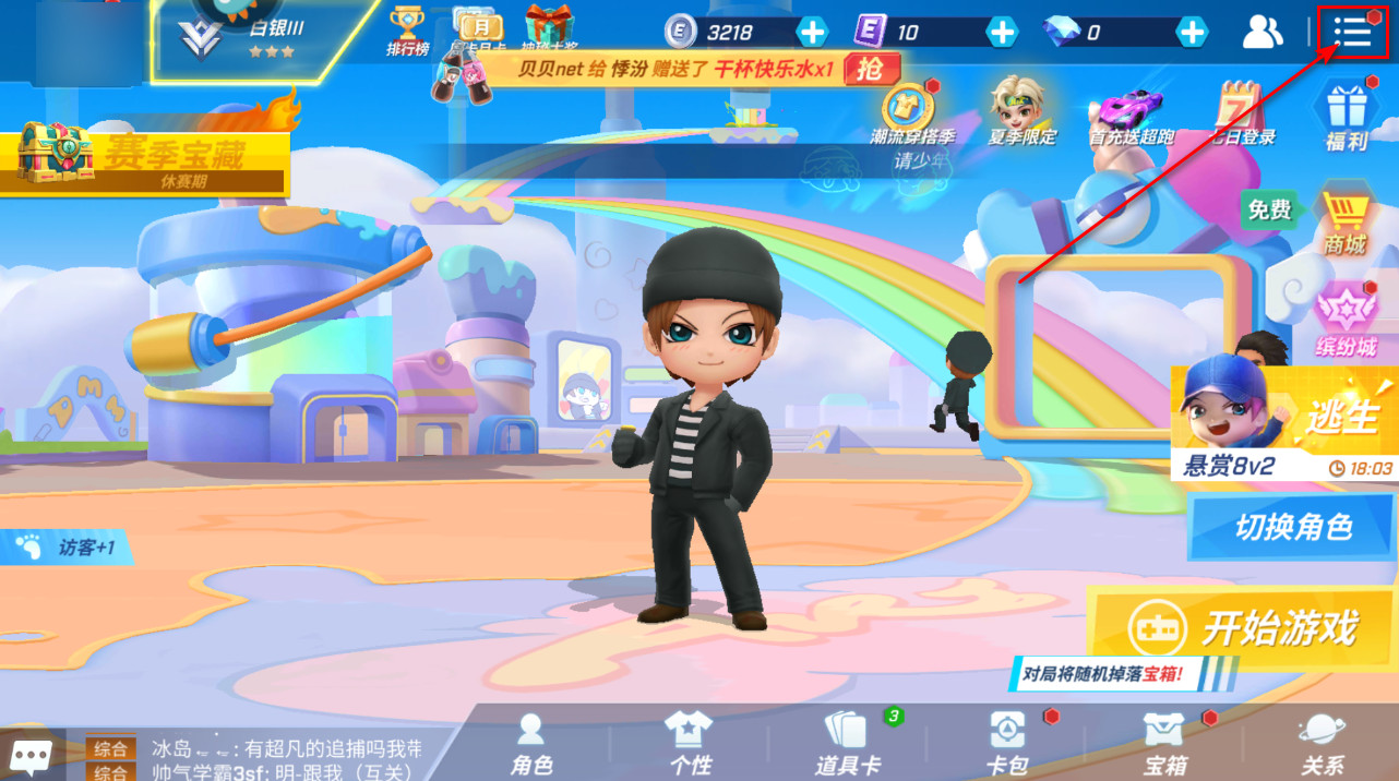 1.进入游戏,点击右上角的三道杠。