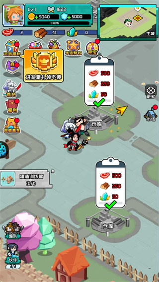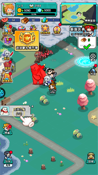 奖励一览:雕像进阶石、肉、矿石、木材、boss挑战券、装备锻造券、英雄升星石、装备精华、紫色怪物宝箱、橙色怪物宝箱、紫色英雄宝箱、橙色英雄宝箱