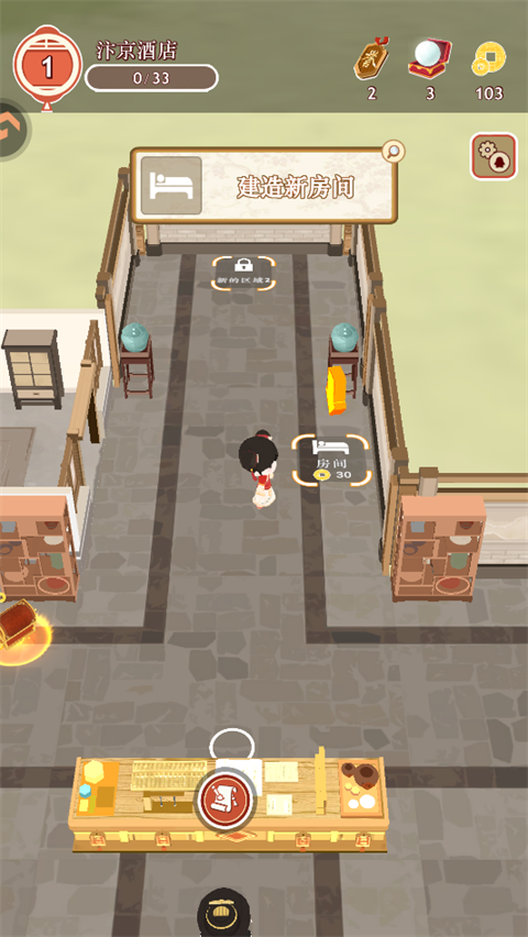 2. 游戏以咱国家不同地貌展开,有西域大漠的月牙泉酒店,有大草原的蒙古包酒店,还有汴京酒店,后期特色酒店更多。