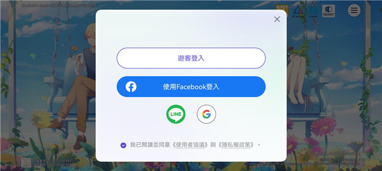 1、如果是新玩家,那么在进入游戏的时候,系统会提示大家注册账号的方式,比较常用的有谷歌游戏、游客登录等。