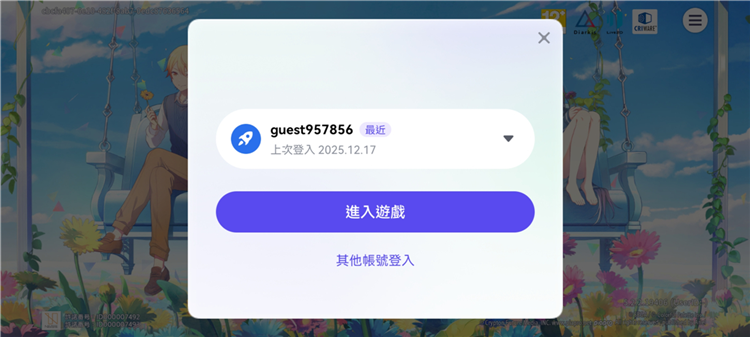 1、如果是以游客模式登录的游戏,那么每次在进入游戏的时候系统会提示上次登录的账号,直接点击进入游戏就可以,不过有条件的玩家最好绑定一下账户,避免账号丢失。
