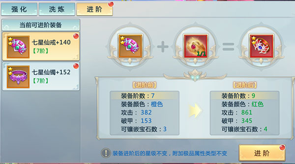 4、点击“洗练”按钮,即可进入洗练面板。在这里,您需要选择要替换的属性种类,例如攻击、防御、生命等。