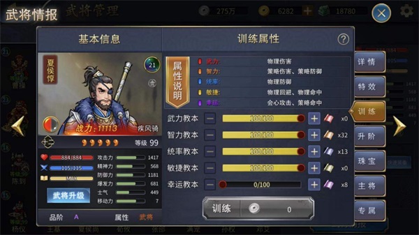 总之我的两件+13的装备让我打过了。小编也是自己研究了好几天,终于通关了,现跟大家一起分享。这是我夏侯的属性。