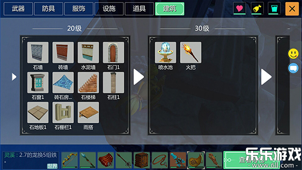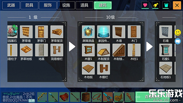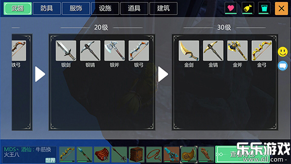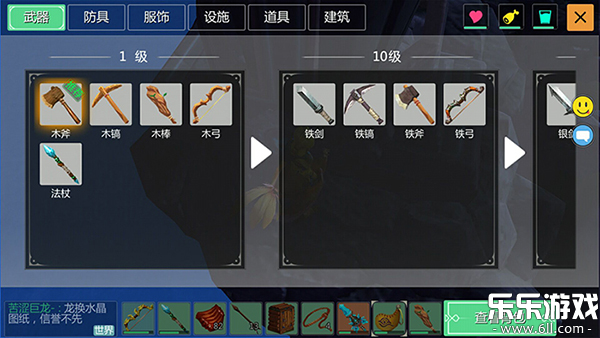 2、以下图片分别为玩家在1级、10级、20级、30级相对应可以制作的武器道具。