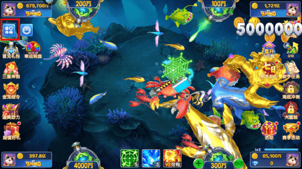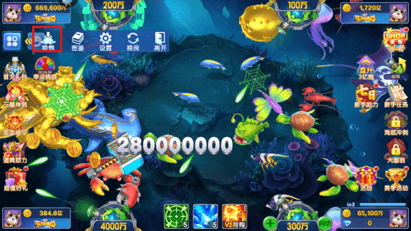 2、开炮会消耗金币,而捕捉到鱼会得到金币。大鱼难以捕获,需要更强力的武器作为支撑,试着将武器提供更高等级,全面提高捕鱼几率。