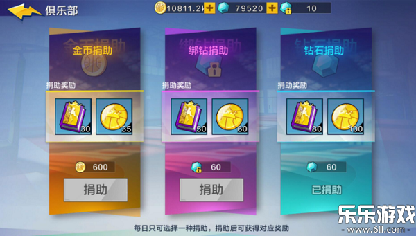 玩家可以通过捐献,来获得重要的熟练度,以及俱乐部金币!