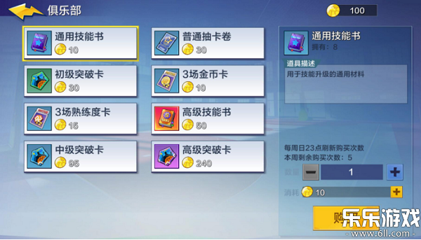 在俱乐部的商店中,你可以购买你想要的商品,技能书,抽卡卷,以及熟练度,突破卡等!