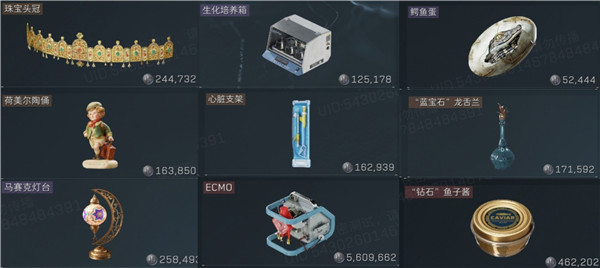 珠宝头冠,生化培养箱,鳄鱼蛋,荷尔美陶俑,ECMO,马赛克灯台,心脏支架,蓝宝石龙舌兰,钻石鱼子酱。