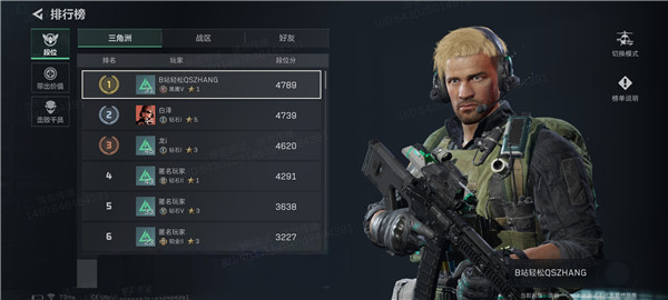 然后是排行榜功能,分为烽火地带和全面战场两个模式,我觉得这个没什么可说的,因为和其他游戏一样,属于基础功能。