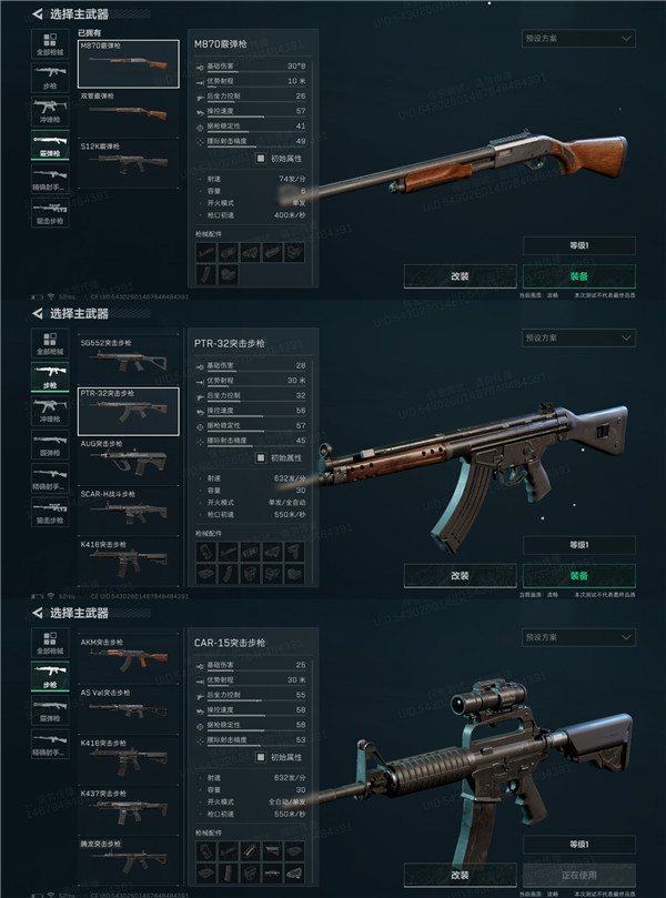打大战场的玩家建议看下这条,这次体验服全面战场的干员武器池又更新了,这次给侦察兵上了S12K和S686两个霰弹枪,冲锋枪、狙击步枪、射手步枪没变化,主要是步枪新增了HK416和PTR32步枪,还有就是突击兵武器也给了HK416,然后新枪HK437也是突击兵的武器。