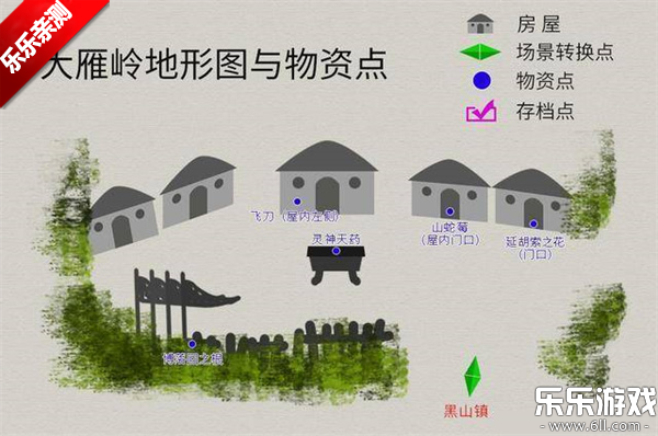 流程:进左侧屋内与玉儿对话→出门与张烈对话→(6日后)进中间帐篷与张烈对话→前往卢家渡。大雁岭地图如下。