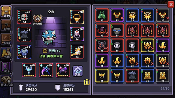 我的勇者是一款像素风格的动作角色扮演游戏(ARPG),融合了BD(Build,角色构筑)流派构筑、弹幕射击、高自由度养成等元素。游戏以勇者大陆为背景,玩家将扮演战士、游侠、牧师、法师、忍者五大职业之一,通过挑战副本、收集装备、培养宠物、搭配符文等方式,构建独特的角色Build,参与单人或多人玩法,体验快节奏的射击冒险与策略对抗,每个职业有专属技能,玩家需根据战斗场景选择主输出技能与辅助技能。例如,游侠可搭配“疯腾乱舞”(输出)+“丛林之魂”(回复)+“万箭齐发”(范围伤害)+“救援信号”(辅助),宠物分为普通、稀有、特殊品质,可协助战斗、提供增益。玩家可通过任务、宝箱、商店等途径获取,搭配不同宠物组合提升战力,限时开放的3V3对决,玩家组队或匹配对抗其他玩家,获胜可获得积分晋升段位,赛季结束根据段位发放奖励。