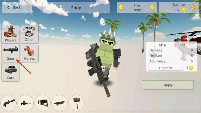 3、选择左侧的guns即可切换不同武器。