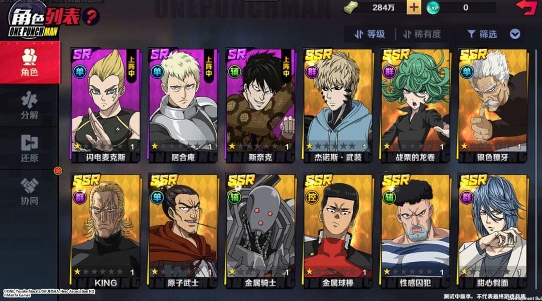 角色觉醒需要用到原素,原素在怪人研究所中掉落,不同类型的原素掉落的副本也不同。个人感觉前期觉醒一些关键角色就好,比如抽到的SSR角色,或者是火面男,无证骑士这种后期也能用到的功能性角色,攻击型角色可以先观望一会。