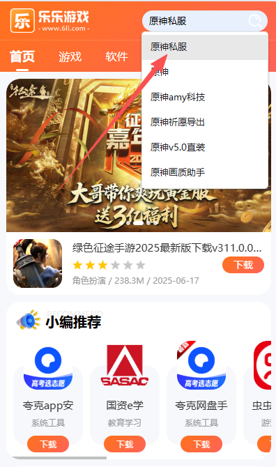 1、这里给大家整理了本站的下载渠道,在首页上方搜索栏输入原神