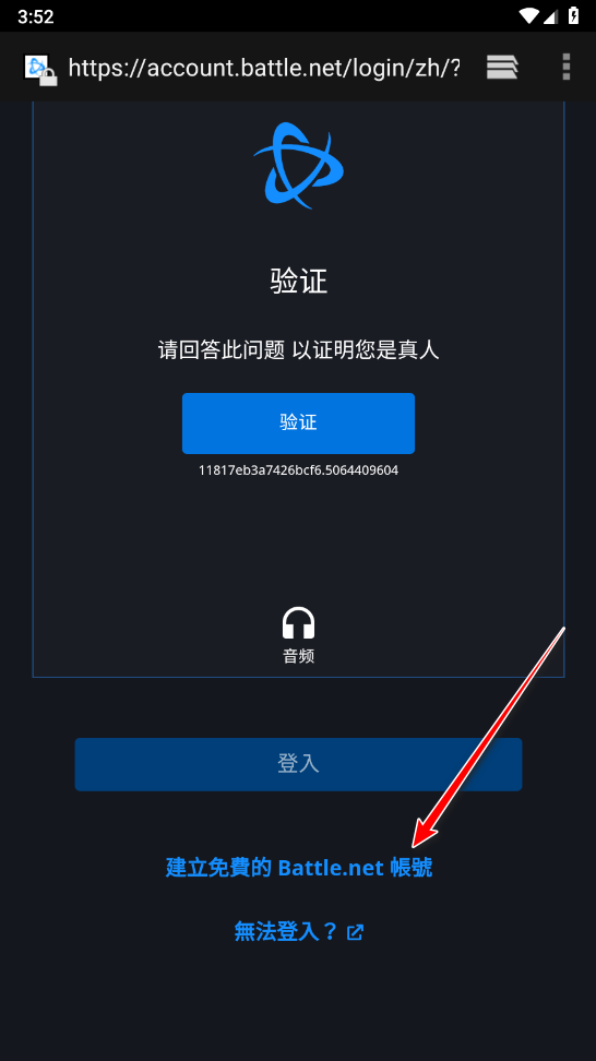 2、接着会跳转到浏览器,我们往下滑动,并点击建立免费的Battle.net账号