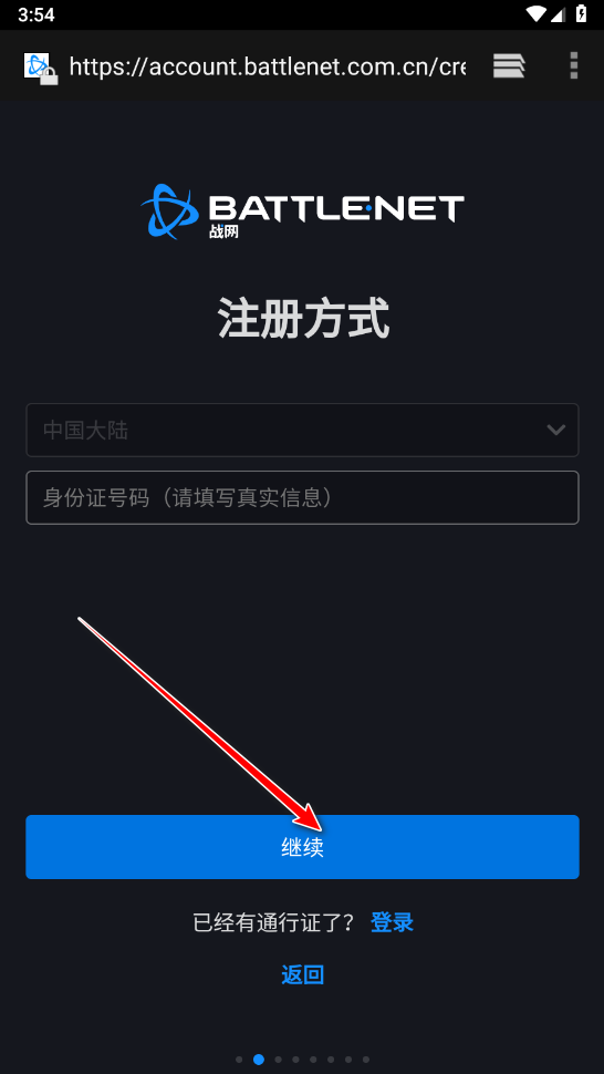4、输入自己的身份证号,并点击继续