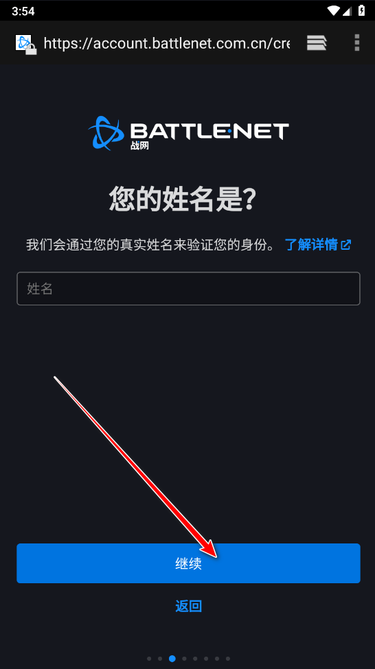 5、输入自己的姓名,并点击继续