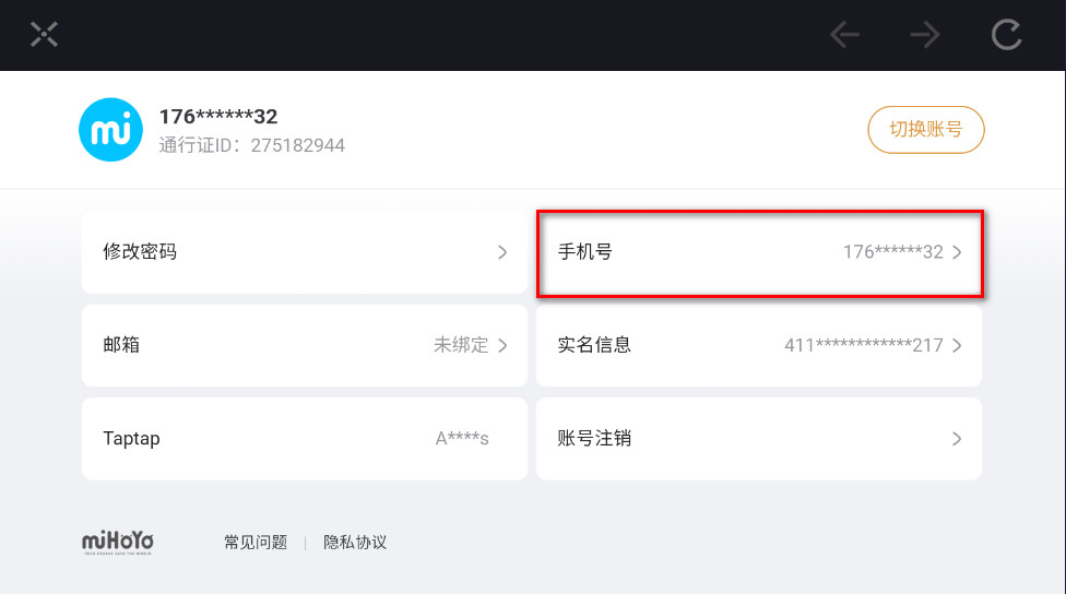 渠道差异:官服(米哈游通行证)与B站服换绑流程不同,本文以官服为例,B站服需通过B站账号中心操作。