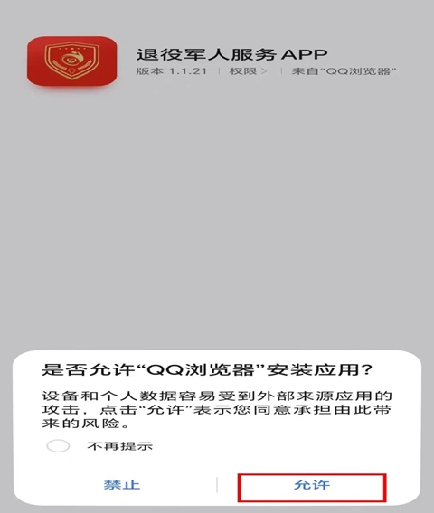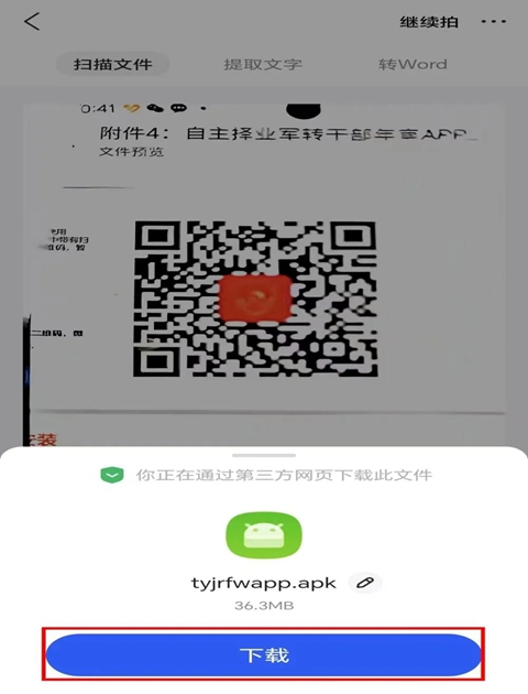 扫描二维码后,底部弹出窗口点击“下载”,并允许浏览器安装应用此APP,安装成功。