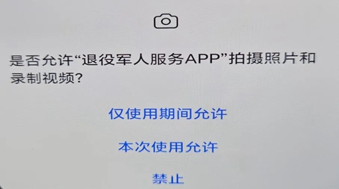 进行人脸识别,根据提示点击允许“退役军人服务APP”拍摄照片和录制视频。